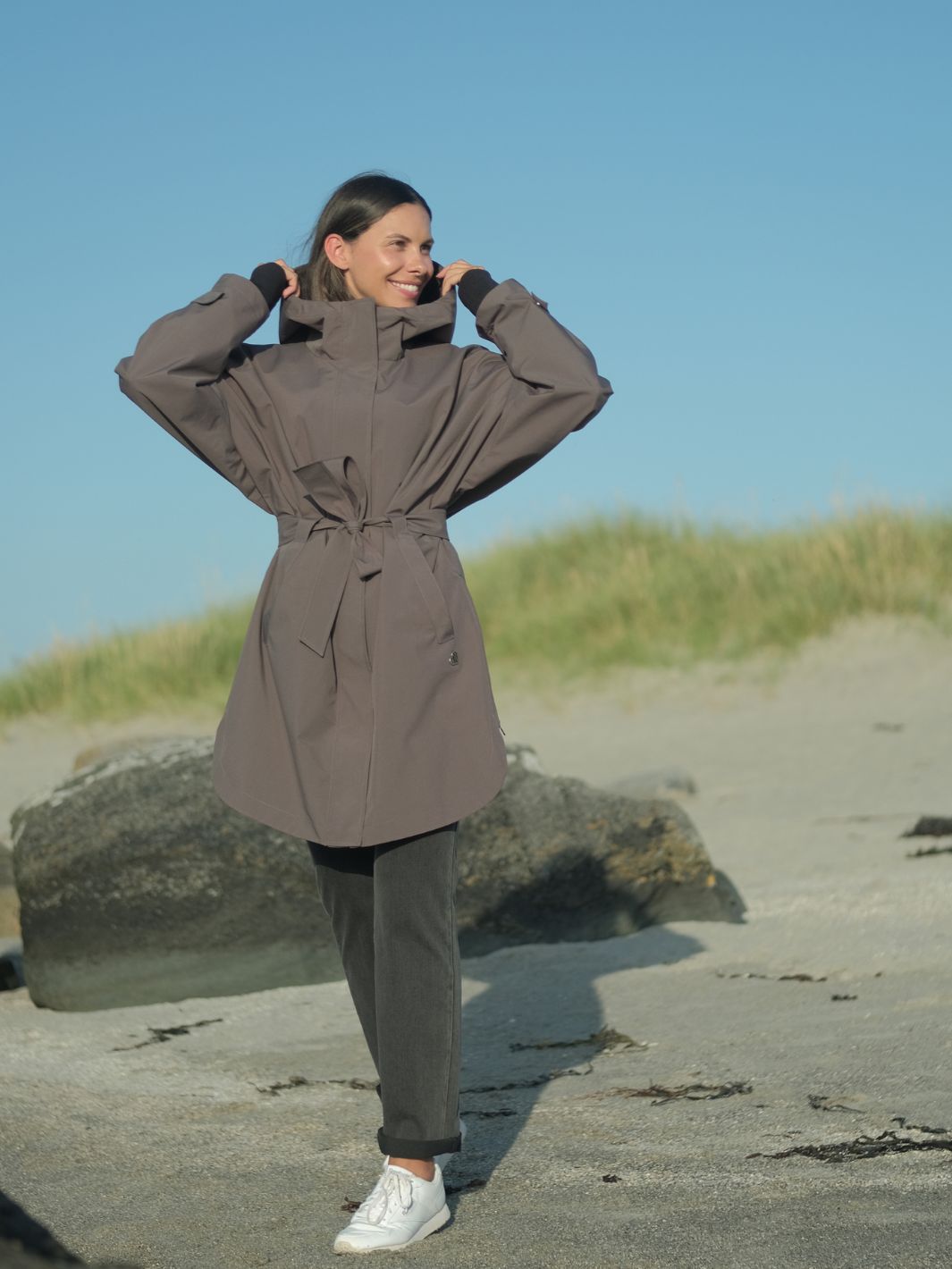 Lule The Wide Jacket is the oversized statement piece your wardrobe has been waiting for—modern, versatile, and effortlessly cool. The fixed hood and removable belt offer flexible styling, while inside adjustments let you dial in the perfect fit. With a relaxed cut that encourages layering—from turtleneck sweaters to fleece pullovers—it’s ideal for spring, autumn, and even winter when paired with warm underlayers. Made from premium, easy‑care fabric with taped seams and a 10,000 mm waterproof rating, it stands confidently in Coffee and Black. Discreet reflective details make it extra smart in the dark: Simply fold up the cuff to reveal a hidden reflective band – perfect for evening walks. You’ll also find a subtle reflective detail at the lower back of the jacket. Made from 100% polyester – breathable and soft against the skin.