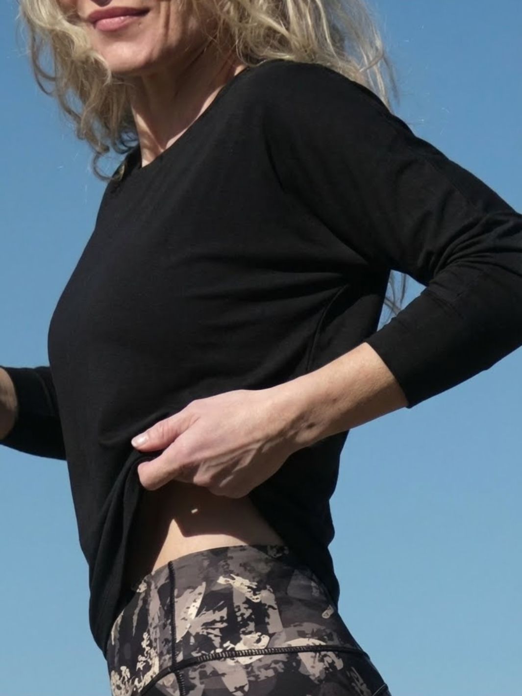 Sweater to love - so we named it Loveit! It has a beautiful loose shape with tighter band at the bottom that holds it close to the body and gives an extra feminin and flattering shape. With 3/4 arm and wide neck, we think we managed to create the perfect sweater for everyone, regardless of body shape and age.