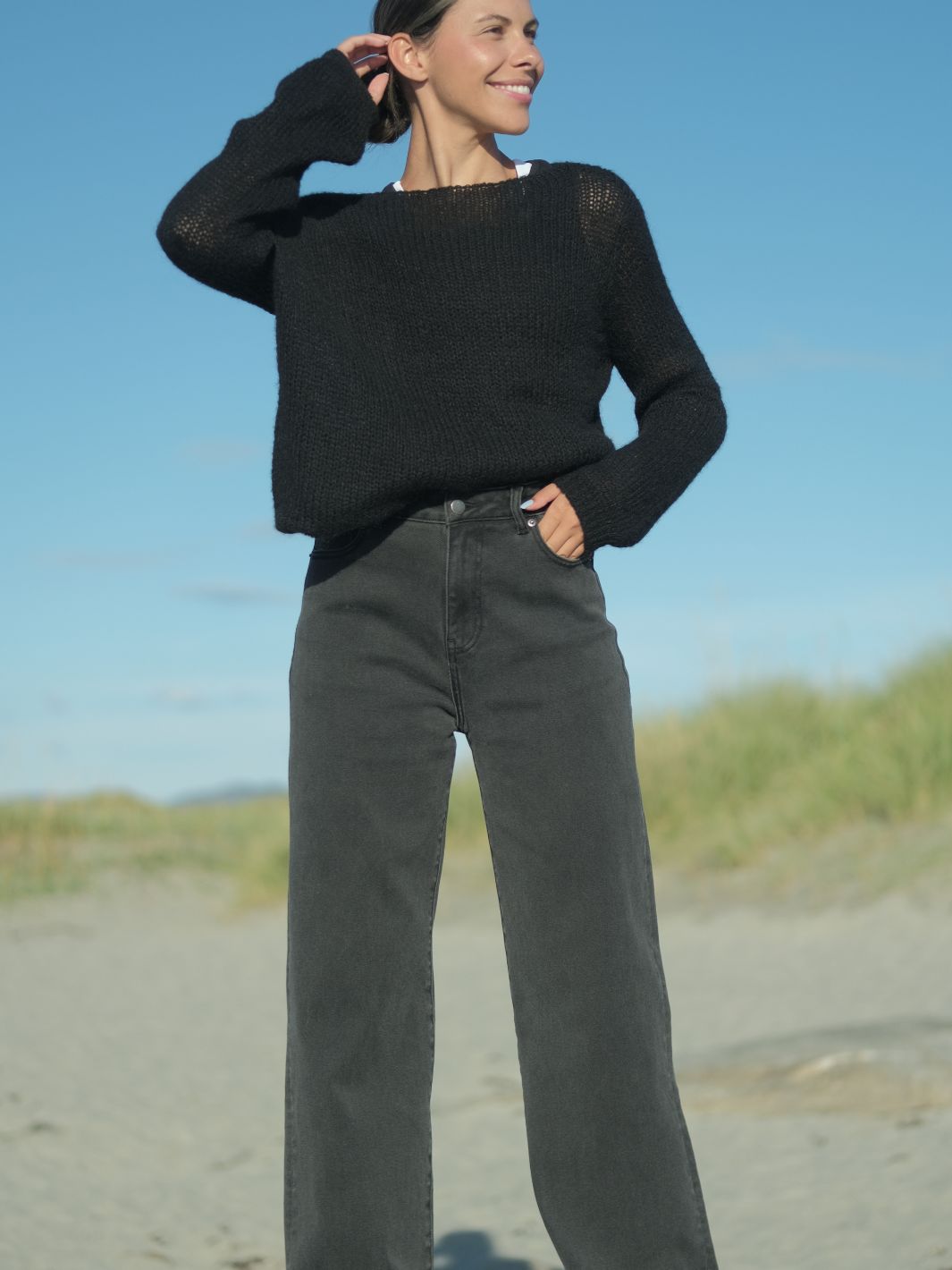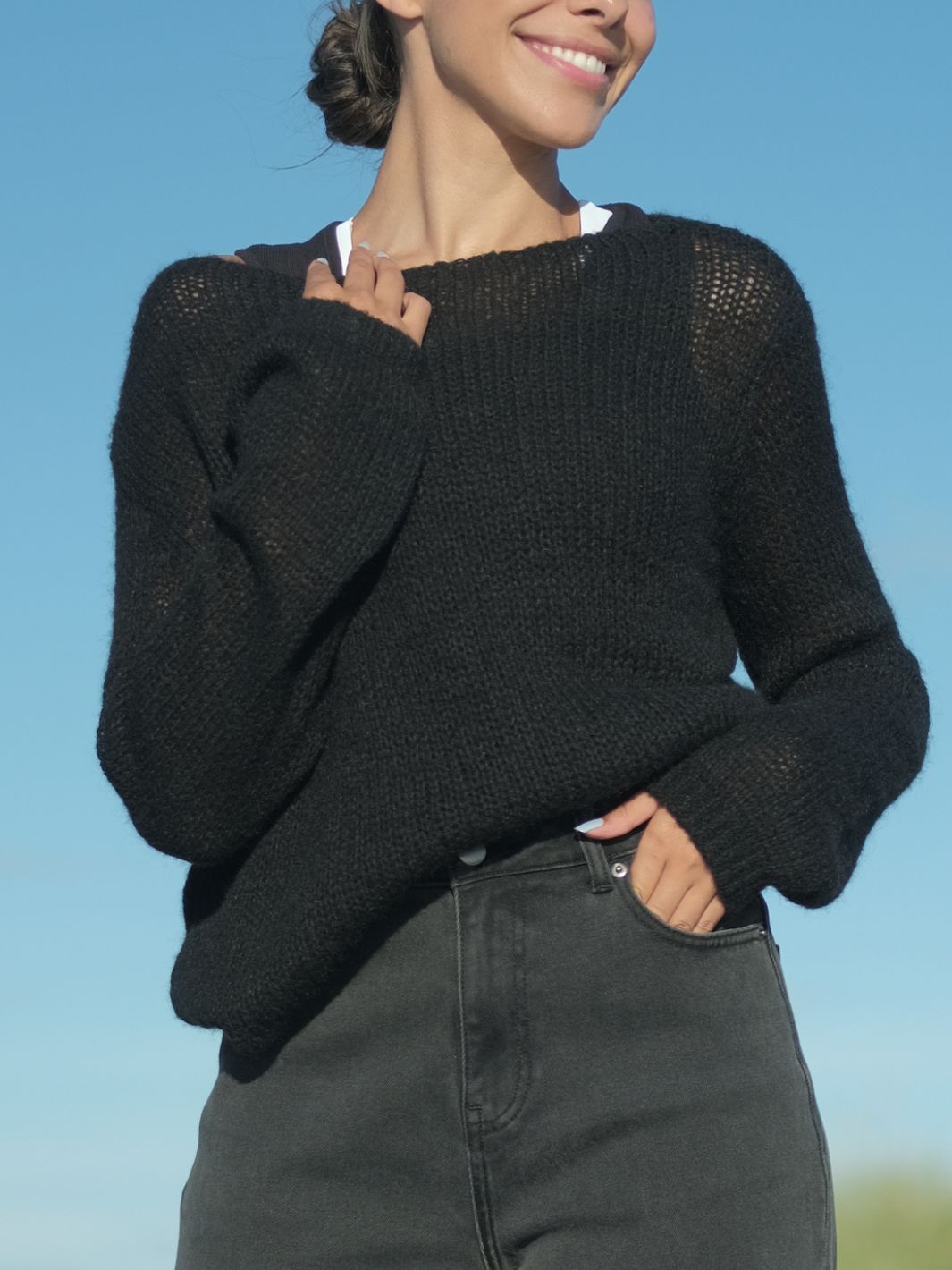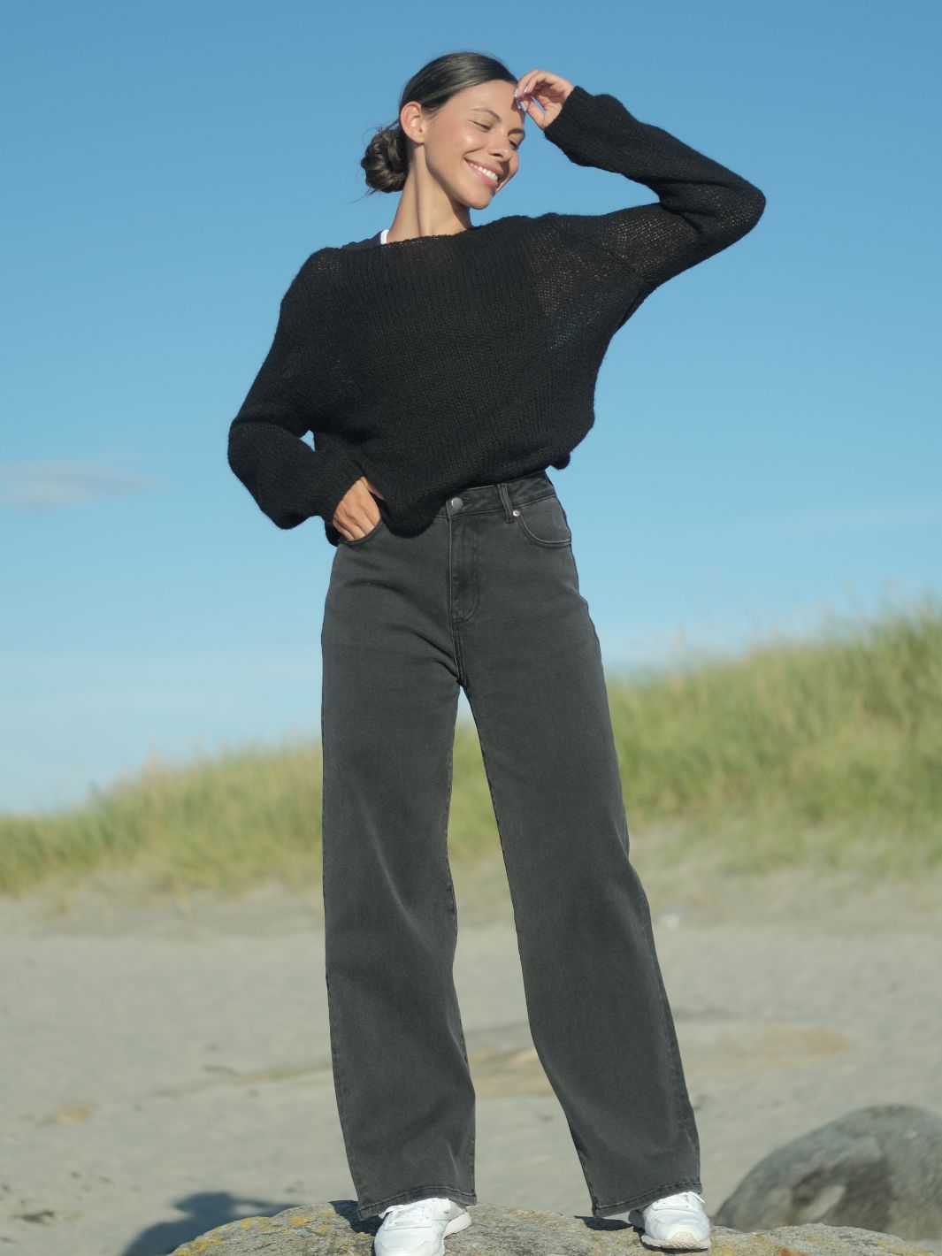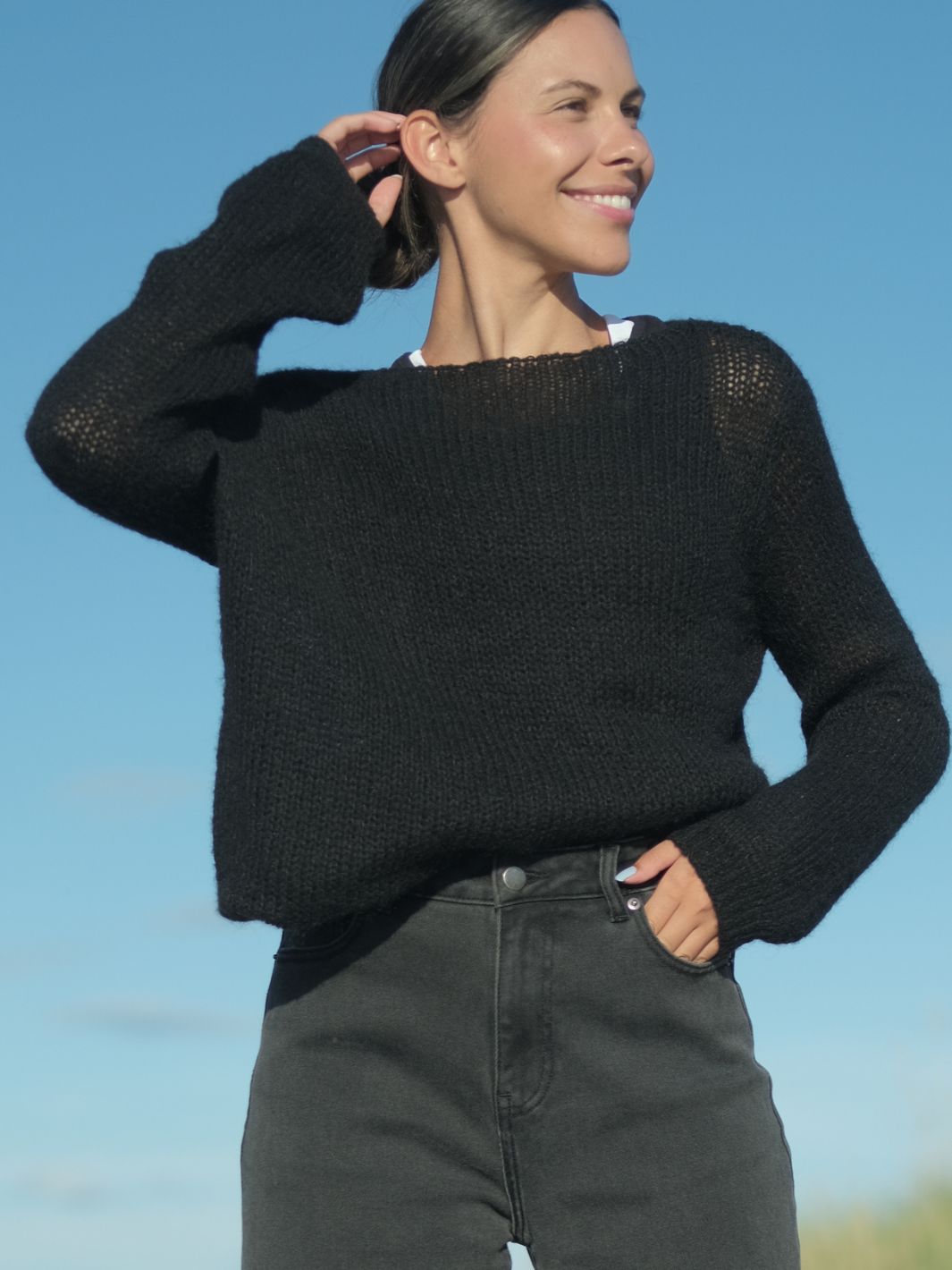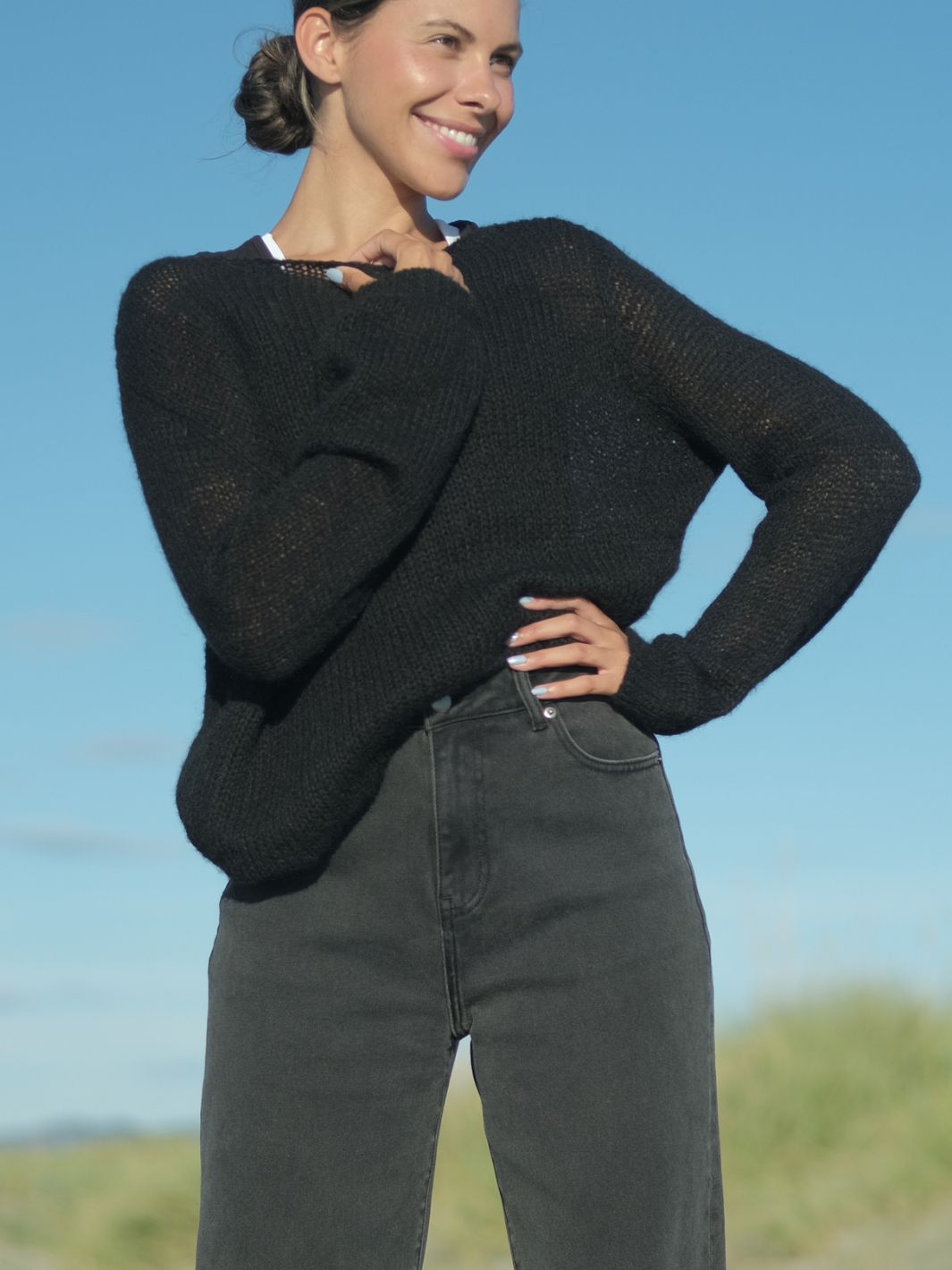 Experience luxurious comfort and style in our exclusive wool and mohair sweater! The large, airy stitches make this sweater warm yet lightweight—perfect for both cooler and warmer days . The long sleeves feature a thin ribbed cuff, allowing you to easily pull them up a bit.